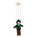 Dřevěná loutka s jednoduchým vodícím křížem, umožňujícím snadné ovládání pro děti i dospělé.