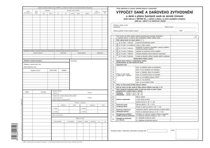 Mzdový list Platný tiskopis k 1.1.2021