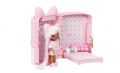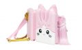 Hrací sada s motivem kočičky. Obsahuje módní plyšový batoh, měkkou panenku s exkluzivním oblekem a tajnou ložnici s postelí, polštářk, peřinkou, šatnou, věšáčky a velikým zrcadlem. Fialová kočička má zlaté detaily. Velikost panenky 20 cm.