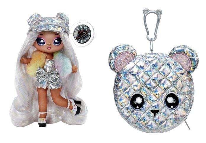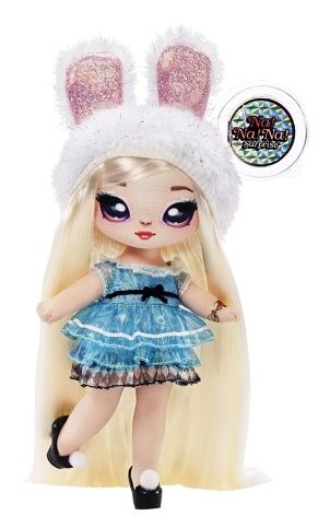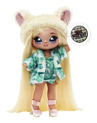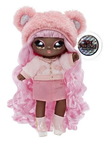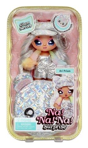 Na! Na! Na! Surprise je úžasná měkoučká fashion panenka ukrytá v zářivém zvířátku, které si můžeš připnout na batoh nebo na kabelku. Zvířátko je nyní vyrobené ze zářivé metalické látky. Panenka má krásné vybarvené oči a dlouhé řasy. Panenku tentokrát najdeš v průhledném balení, tak přesně víš, o jakou se jedná. Můžeš hned vidět úžasné detaily jejího outfitu, ale i barvu a tvar zvířátka. Na čepičce panenky najdeš visačku ve tvaru kolečka, ve kterém se dočteš, jak se panenka jmenuje, kdy se narodila a charakteristiku její osobnosti.