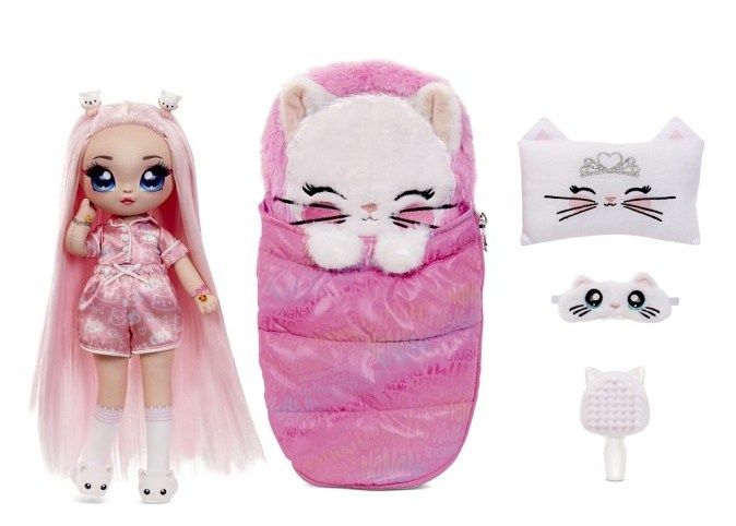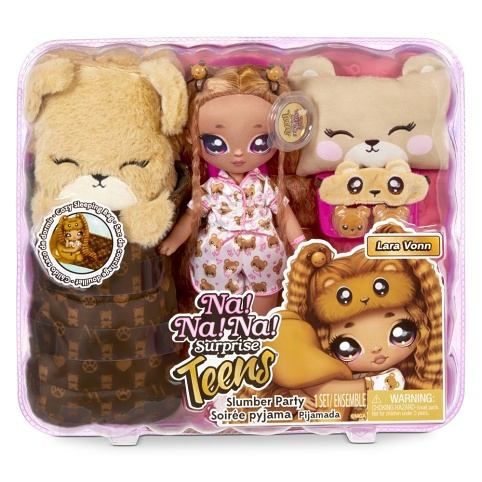 Na! Na! Na! Teenagerky dnes mají Pyžamovou párty! Krásné fashion panenky nyní přicházejí se vším, co potřebují pro útulný a luxusní spánek u kámošky. Jejich módní doplňky dělají okouzlující dokonce i spánek! Panenka má dlouhé česatelné vlásky.