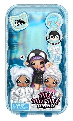 Zachumlej se s Na! Na! Na! Surprise Zimní panenkou. Balónek s konfetami se postará o výbuch zábavy při rozbalování. Nedá se poznat, která postavička se v balení skrývá, ale pro ty, kdo to chtějí vědět, je na obale nápověda. Zimní panenky inspirované zimními zvířátky jsou měkké a tvarovatelné, mají vytištěný obličej a módní doplňky. V balení je také praktická roztomilá kabelka z hebkého plyše ve tvaru zvířátka, kterou si můžeš připevnit k batohu nebo k větší kabelce. Získej všech 6 Zimních panenek a chlupatých kabelek.? Obsah balení: • 1 měkká panenka s pohyblivými klouby inspirovaná zimními zvířátky • 1 připínací chlupatá kabelka • 1 outfit a 1 pár bot? • visačka se základními informacemi o postavičce včetně data narození Velikost panenky: cca 20 cm.