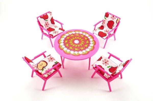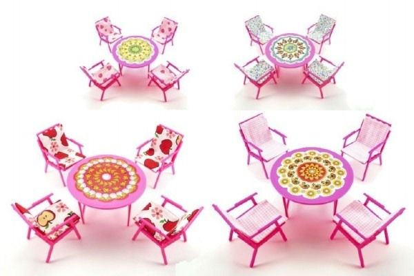 Nábytek pro panenky stůl + 4 židle plast 17cm v sáčku