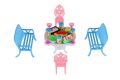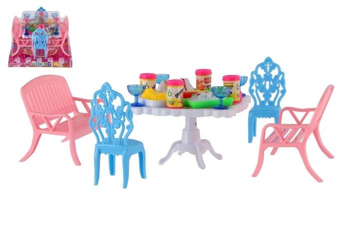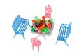 Nábytek pro panenky/stůl a židle plast 4 barvy v blistru 14x11x16cm