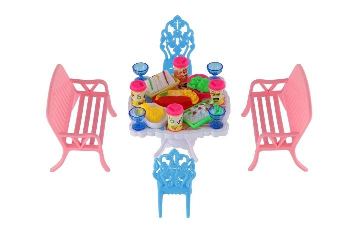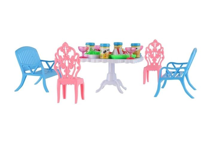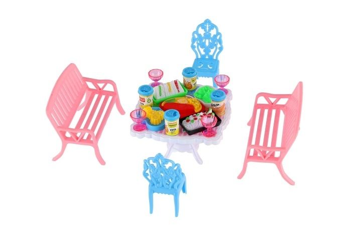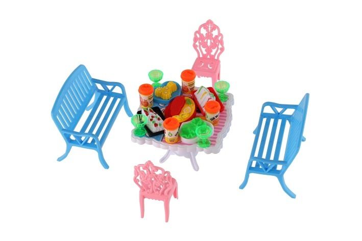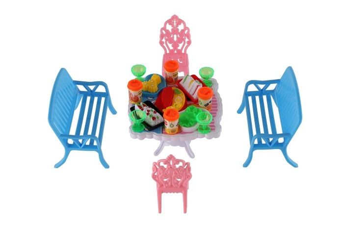 Potřebujete Vašim panenkám zpříjemnit sezení před domečkem? V tom případě je tato sada přesně pro Vás. Dvě lavičky, dvě židličky, stůl a doplňky v podobně pohoštění na stůl bude jistě oblíbenou část obydlí pro panenky.