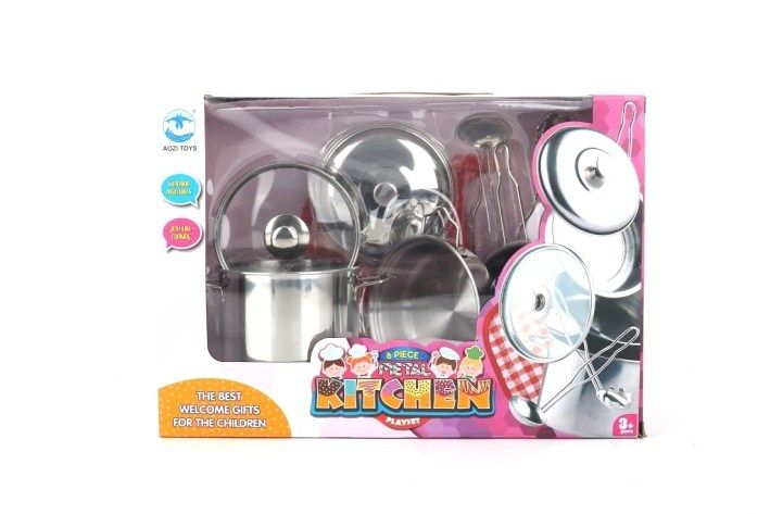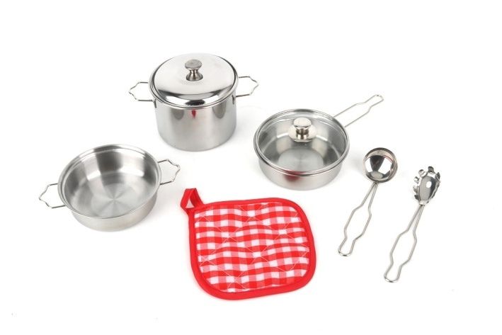 Krásná sada nádobí a kuchyňských potřeb, které potěší každou malou kuchařku a hospodyňku.