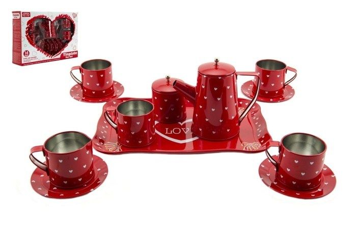 Nádobí červené plechové 14ks v krabici 34x24cm