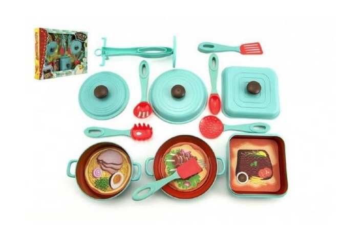 Sada nádobí pro každou malou hospodyňku. Balení obsahuje 2x kastrólek s pokličkou, pekáček s pokličkou, 6x náčiní a rukojeť ke kastrůlkům.