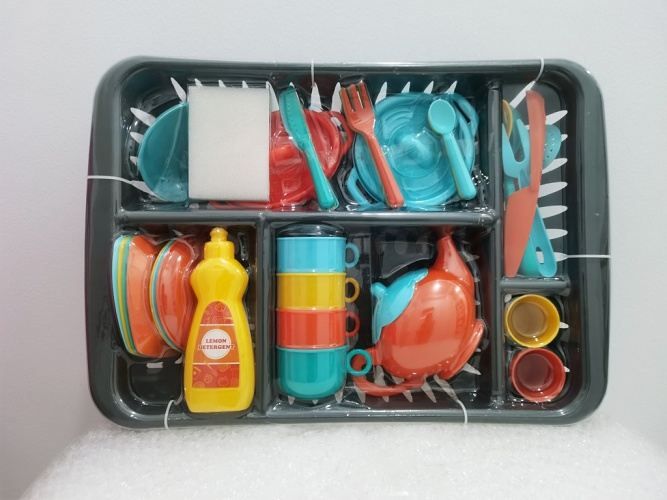 Sada nádobí pro malé hospodyňky s odkapávačem. Výrobek je vhodný pro děti od 3 let.