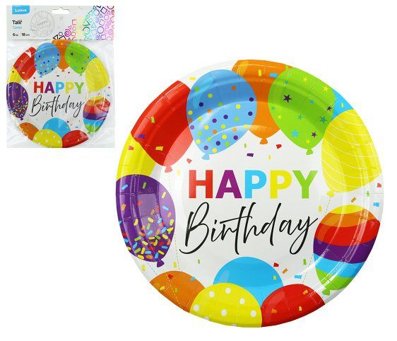 Nádobí - Talíř 18cm HAPPY BIRTHDAY 6ks LUMA