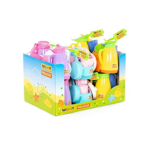 Barevný set s konvičkou: konvička, 4 hrníčky, 4 podšálky, 4 lžíčky, cukřenka, mlékovka