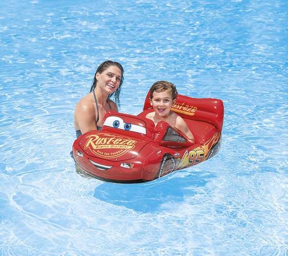 Nafukovací vozítko do bazénu Cars o velikosti 109 cm x 71 cm. Opravná