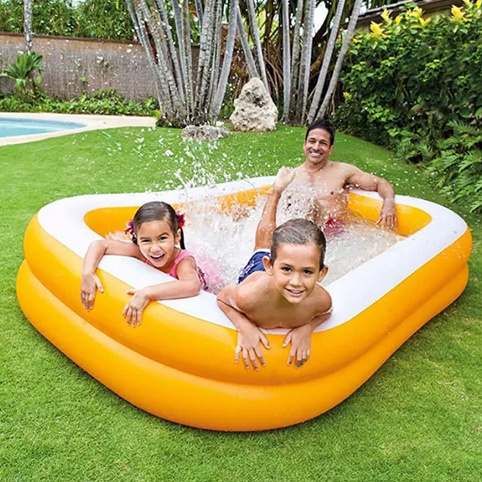 Nafukovací bazén INTEX 229 x 147 x 46 cm si vaše děti jednoduše zamilují. Netlačte se v létě na koupališti a připravte vašemu dítěti bazének v pohodlí zahrady. Výhodou nafukovacích bazénů je to, že k jeho sestavení nepotřebujete žádné nářadí. Stačí bazének pouze nafouknout, napustit vodou a můžete si s vašimi ratolestmi užívat vodních radovánek doslova během pár minut. Pozvi své kamarády na zahradu a dopřejte si to pravé ledové osvěžení!