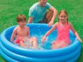 Větší dětský bazének modré barvy, šířka 168 cm a výška 38 cm. UPOZORNĚNÍ: Používat pouze ve vodě takové hloubky, kde dítě stačí, a pouze pod dohledem dospělé osoby.