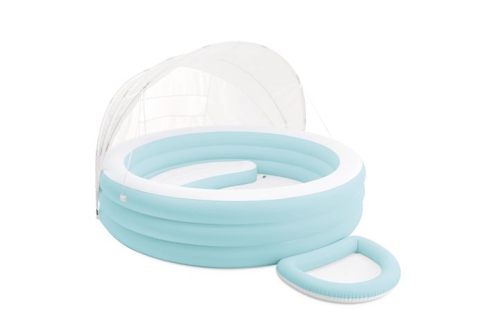 Nafukovací bazén Swim Center™ Canopy Lounge je navržen jako pohodlný a praktický doplněk pro letní osvěžení dětí i dospělých. Bazén je kulatého tvaru a jeho stěny jsou tvořeny třemi nafukovacími kruhy v jemné světle modré barvě, která působí svěže a příjemně. Uvnitř bazénu je integrovaná nafukovací sedačka, která je dostatečně prostorná, aby si na ni uživatel mohl pohodlně sednout a relaxovat. Sedačka je barevně sladěná s vnějším obvodem bazénu, což podtrhuje celkový design produktu. Součástí bazénu je také nafukovací vana na nohy, která nabízí další komfortní prvek pro uživatele, a zvyšuje tak pohodlí během pobytu ve vodě. Bazén je vybaven odnímatelnou stříškou, která poskytuje účinnou ochranu před slunečními paprsky. Stříška je vyrobena z lehkého materiálu bílé barvy a disponuje faktorem ochrany UPF 50+, což výrazně snižuje riziko spálení a přehřátí. Konstrukce stříšky je stabilní díky kovovým tyčkám, které jsou pevně uchyceny do speciálních držáků na obvodu bazénu, a dále ji lze jednoduše připevnit či odejmout pomocí poutkových systémů a šňůrek. Bazén je vybaven praktickým vypouštěcím ventilem, který umožňuje snadné a rychlé vypuštění vody bez nutnosti převracení či složité manipulace. Kvalitní ventil je umístěn na dně bazénu v blízkosti sedačky, což usnadňuje údržbu a čištění. Nafukovací materiály jsou pevné a odolné, navržené tak, aby vydržely časté používání a zajišťovaly bezpečnost při hře i odpočinku. Produkt je vhodný pro děti od 3 let, díky čemuž je ideální volbou pro rodinné využití na zahradě či na dovolené. Celkově bazén Swim Center™ Canopy Lounge spojuje funkčnost, komfort a bezpečnost v jednom produktu. Jemné barevné provedení, praktické doplňky a kvalitní provedení z něj činí atraktivní a spolehlivý doplněk pro letní zábavu a odpočinek.