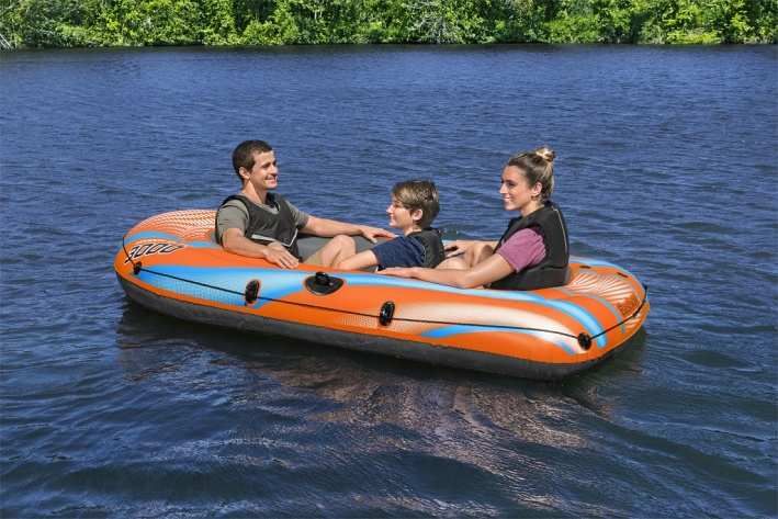 Člun Kondor Elit o velikosti 2,46 m x 1,22 m, který je vhodný pro dva dospělé a dítě (maximální nosnost je 200 kg). Snadno se nafukuje a má nafukovací podlahu, pro lepší komfort. Člun je vybaven dvěma vzduchovými komorami, které poskytují dodatečnou bezpečnost. Rukojeť připevněná k přední části nafukovadla umožňuje snadnou přepravu do a z vody. Nafukovací člun je navíc vybaven robustními zámky na vesla, kterými vesla (nejsou součástí balení) drží na místě. Celoobvodový popruh s integrovanými průchodkami pro lana umožňuje kotvení nebo připojení k jiným lodím.