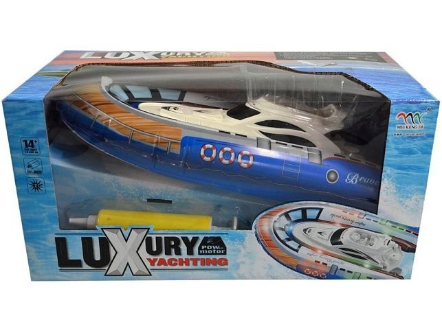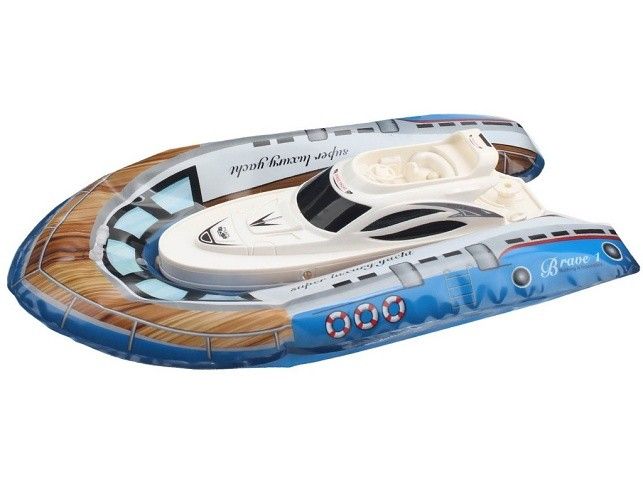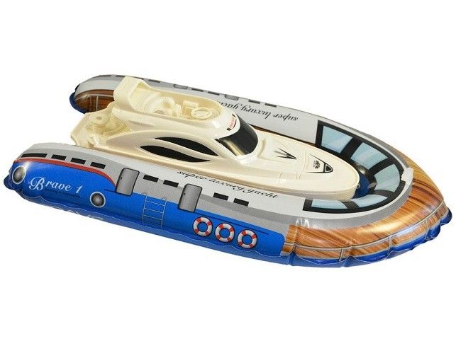 Skvělá loď na plavbu v bazénu nebo na rybníku. Trup lodi se nafoukne přiloženou pumpičkou a může se vyplout. Loď má nastavitelné kormidlo, takže se k vám vždycky v kruhu vrátí. Rozměry lodě 35 x 18 cm. Napájení 3 x 1,5 V AA (tužkové baterie, nejsou součástí). Obsah balení: jedna loď, vzduchová pumpička. Rozměr boxu 38 x 11 x 20 cm. Vhodné pro děti od 3 let.