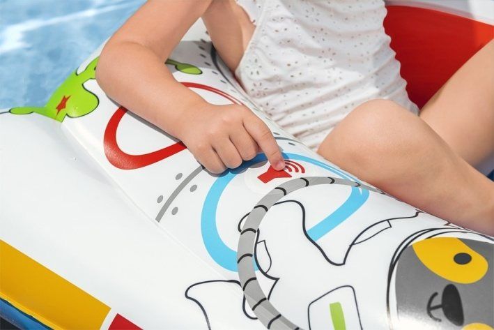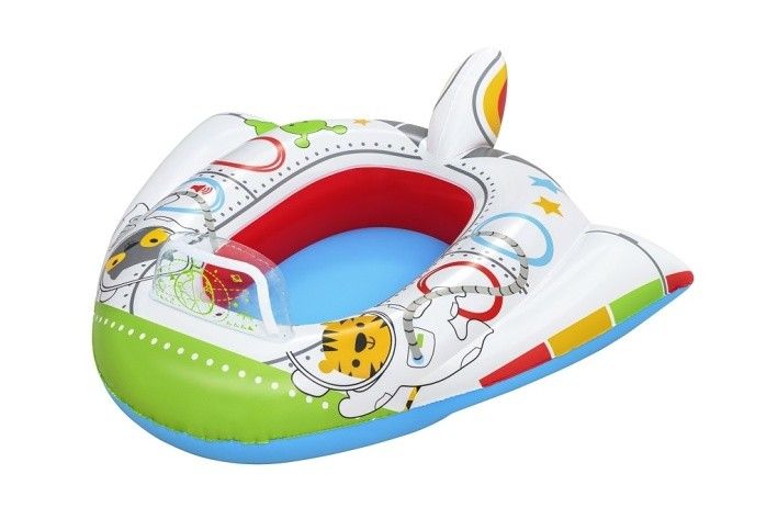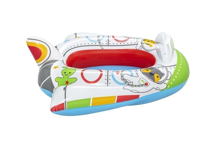 Nafukovací člun vesmírná loď o velikosti 1,04 m x 99 cm a s maximální nosností 45 kg je určena pro děti od 3 let. Loď dělá zvuky. Baterie nelze vyměnit. Člun je vyrobený z pevného a odolného vinylu, zajistí skvělou a bezpečnou zábavu. Na baterie: 3x LR44 (jsou součástí balení)