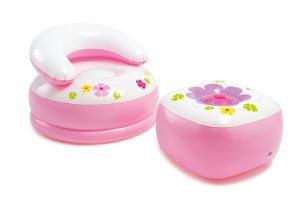 Skládá se z nafukovacího křesílka a stolečku. Opravná sada přiložena.