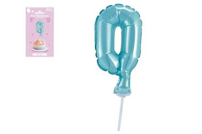 Modrá nafukovací číslice na tyčce o velikosti 13 cm. Ozdoba na dort a další dezerty.
