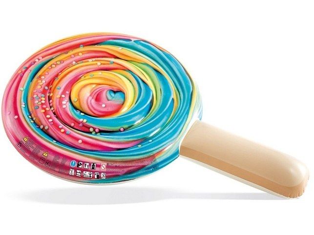 INTEX 58754EU Nafukovací duhové lízátko, 1,98 m x 1,27 m x 25 cm. Stačí pouze nafouknout a můžete si užít spoustu zábavy s lízátkem, které je vyrobené z odolného vinuly. Vítané zpestření zábavy pro malé plavce ať už na koupališti nebo ve vlastním bazénu na zahradě. Stěny jsou vyrobeny ze zdravotně nezávadného vinylu o tloušťce 0,30 mm. Nafukovací hračky a potřeby Intex splňují nejpřísnější bezpečnostní normy na zpracování a použité materiály. Rozměr hračky je 1,98 m x 1,27 m x 25. Materiál hračky je vinyl. Nosnost 100 kg.