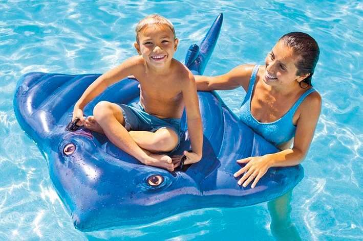 Parádní nafukovací hopsadlo ve tvaru rejnoka ti v létě nesmí chybět! Hopsadlo je vyrobeno z kvalitního PVC materiálu, má 2 úchyty pro lepší držení a jeho rozměry jsou 188 x 145 cm. S touto vychytávkou zažiješ v moři nebo v bazéně zaručeně ranec zábavy! UPOZORNĚNÍ: Používat pouze ve vodě takové hloubky, kde dítě stačí, a pouze pod dohledem dospělé osoby.