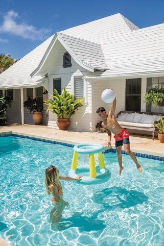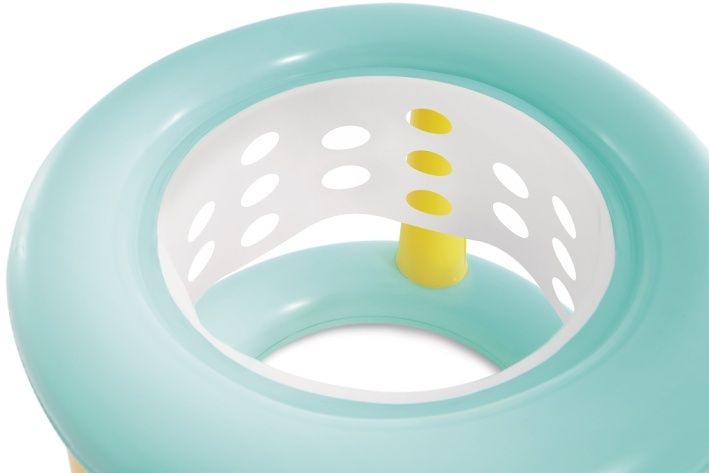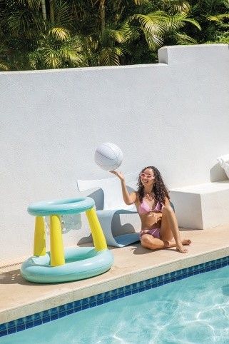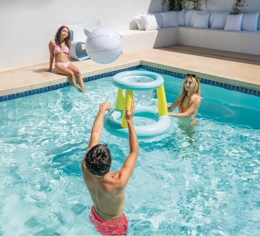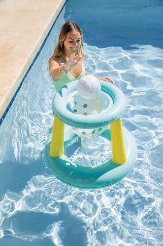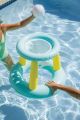 Nafukovací hra Velký basketbalový koš je ideální zábavou pro děti od 6 let, která zpestří každé koupání v bazénu. Tento produkt je vyroben z odolného PVC materiálu, který je příjemný na dotek a zajišťuje dlouhou životnost i při častém používání ve vodě. Basketbalový koš je navržen tak, aby volně plaval na hladině bazénu a umožňoval pohodlnou hru přímo ve vodě. Jeho konstrukce je tvořena dvěma nafukovacími kruhy v pastelově modré barvě, mezi kterými jsou tři pevné žluté sloupky, které zajišťují stabilitu a pevnost. Koš je doplněn o síťku z bílého materiálu s pravidelně rozmístěnými kruhovými otvory, která je připevněna pod horním kruhem a slouží k zachytávání míče. Součástí balení je i nafukovací basketbalový míč ve stejné bílé barvě s šedými linkami, který je dostatečně lehký a plave na vodě, což usnadňuje hru a zvyšuje zábavu. Díky svému kompaktnímu designu a světlým barvám je hra dobře viditelná na vodní hladině a snadno se stává středem pozornosti během bazénových aktivit. Nafukovací koš je vybaven vzduchovým ventilem, který umožňuje rychlé a jednoduché nafouknutí i vyfouknutí, což usnadňuje jeho přenášení a skladování. Hra je vhodná nejen pro děti, ale i pro dospělé, kteří chtějí zpestřit vodní radovánky a soutěžit v házení na koš. Je to praktická a zábavná pomůcka pro letní sportovní aktivity ve vodě, která podporuje pohyb a koordinaci, a zároveň přináší hodiny zábavy v bazénu.