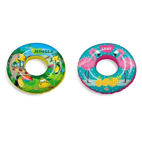 Nafukovací kruh do vody s motivem plameňák a džungle by ti v létě neměl chybět nejen na dovolené, ale ani na koupališti! Kruh o průměru 50 cm je vyroben z kvalitního PVC materiálu. Vyber si jednu z variant.