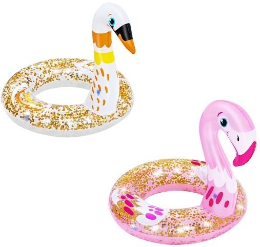 Nafukovací kruh se třpytkami- plameňák, labuť, průměr 61cm
