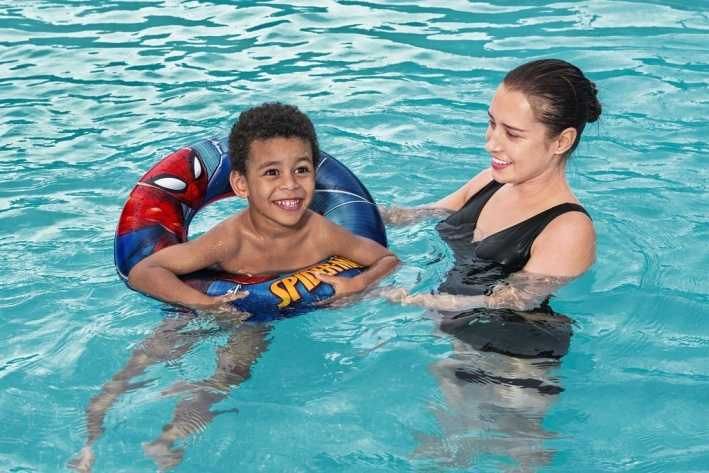Nafukovací kruh v designu Spiderman pro děti od 3 do 6 let o průměru 56 cm.