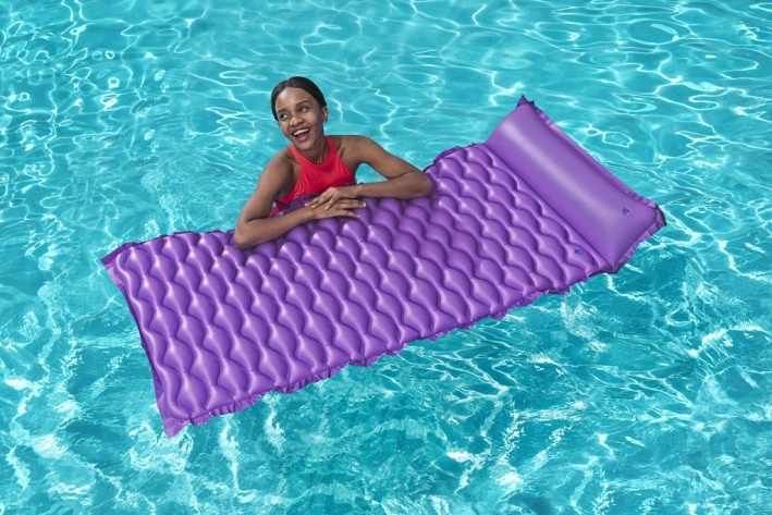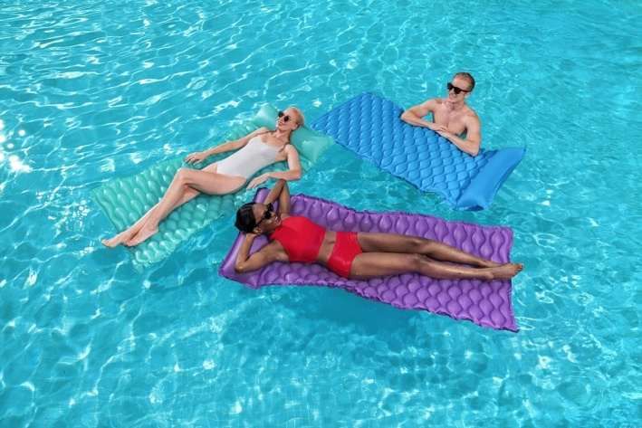 Nafukovací lehátko 2,13 m x 86 cm. Lehátko je vyrobeno z kvalitního vinylu s dvěma vzduchovými komory a ve třech barvách. Maximální váhový limit je 90 kg. Opravná záplata je součástí balení.