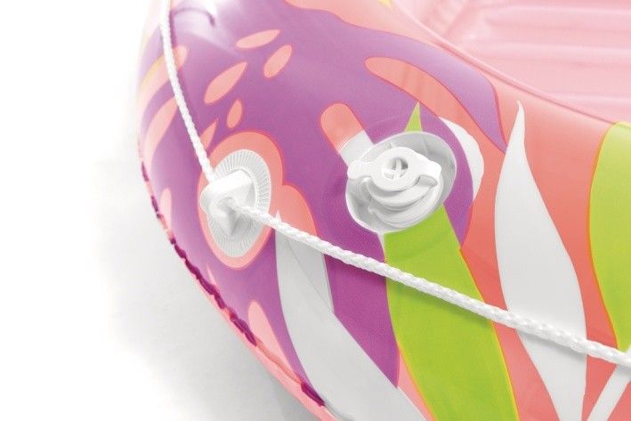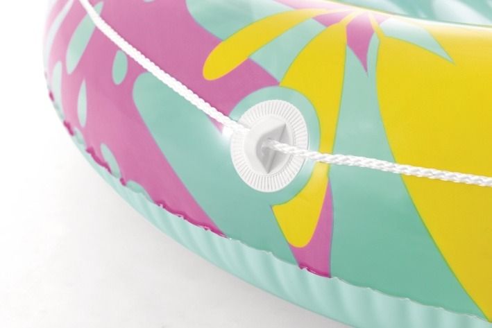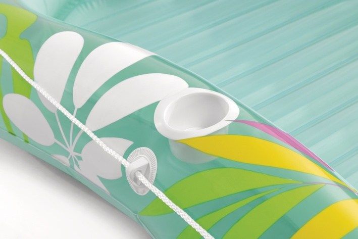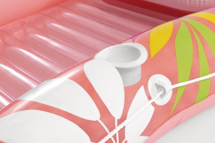 Nafukovací lehátko s polštářkem Tropical Oasis představuje ideální doplněk pro relaxaci na vodě během teplých letních dní. Lehátko je navrženo s důrazem na pohodlí a funkčnost, což zajišťuje zvýšený okraj a integrovaný bílý nafukovací polštářek, který umožňuje pohodlné opření hlavy. Povrch lehátka je vybaven nafukovacím žebrováním, které zlepšuje komfort při ležení a zároveň pomáhá udržet stabilitu na vodě. Lehátko je vyrobeno z kvalitního PVC materiálu s atraktivním tropickým vzorem, který kombinuje různé odstíny zelené, žluté, růžové a fialové barvy. Tento barevný design působí svěže a letně, přináší do bazénu nebo na vodní plochu příjemnou atmosféru. Okraj lehátka je navíc opatřen bílým lanem, které je pevně uchyceno a usnadňuje držení či manipulaci s lehátkem na vodě. Praktickou součástí lehátka je držák na pití, který je umístěn na boční straně, což umožňuje bezpečné uložení nápoje během odpočinku. Nafukovací ventil umožňuje rychlé a snadné nafouknutí i vyfouknutí lehátka, což usnadňuje jeho přenos a skladování. Lehátko Tropical Oasis je k dispozici ve dvou barevných variantách – korálově růžové a mentolově zelené, takže si každý uživatel může vybrat podle svého vkusu. Celkově je nafukovací lehátko Tropical Oasis vhodné pro všechny, kteří hledají pohodlný a stylový způsob, jak si užít léto u vody, ať už v bazénu, na rybníku či u moře. Díky svému designu, kvalitnímu materiálu a praktickým doplňkům nabízí skvělý komfort a zábavu pro každého.