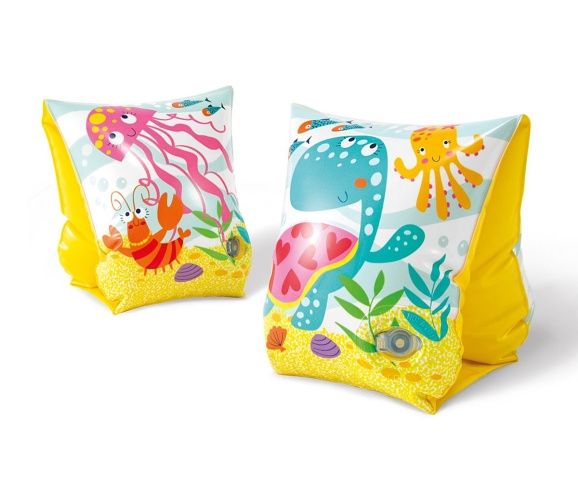 Nafukovací rukávky pro neplavce s pěkným motivem mořský svět. UPOZORNĚNÍ: Používat pouze ve vodě takové hloubky, kde dítě stačí, a pouze pod dohledem dospělé osoby. Velikost cca 23 x 15 cm.
