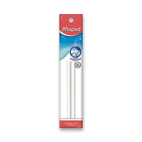 Náhradní pryže pro gumovací tužky Maped Gom-Pen. Neobsahuje PVC. Průměr pryže 6,75 mm, délka 11 cm,Cena za 2 ks.