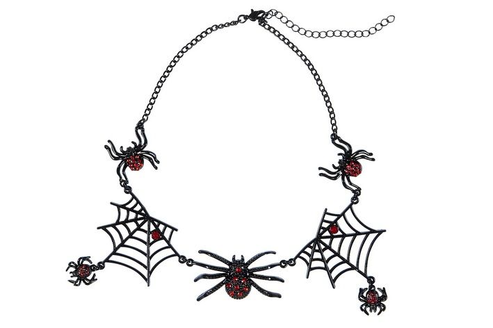 Náhrdelník s pavouky a pavučinami,černý s kamínky