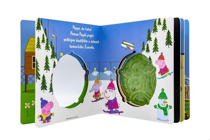 Pomoz Peppě a jejím kamarádům najít správnou cestu! Zábavná aktivity knížka obsahuje 10 stran a bludiště s kovovou kuličkou, speciálně uzpůsobené pro nejmenší děti. Jejich úkolem je určit správný vstup i výstup z bludiště a dovést kuličku až do cíle podle zadání, které se každou stránkou mění.