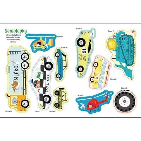 Samolepková knížka obshauje 24 barevných stran a 4 listy plné opravdu velkých samolepek, které děti snadno uchopí do ruky a dolepí.