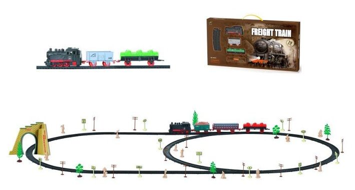 Nákladní vlaková souprava se světlem. Set obsahuje vagóny, stromy