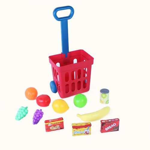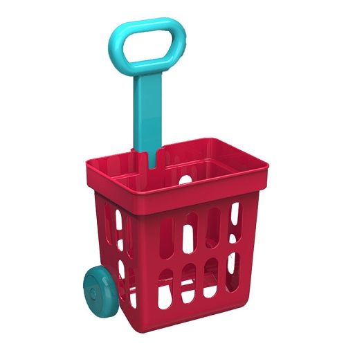 Praktický nákupní košík na kolečkách pro děti s možností nastavení délky rukojeti. Maximální nastavitelná výška je 43 cm. V košíku najdete také 12 různých druhů zboží.