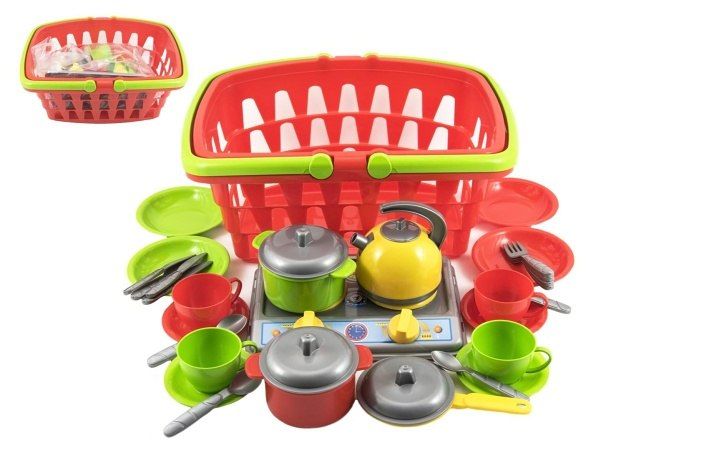 Sada nakupního košíku, vařiče a nádobí udělá radost všem malým kuchařům a kuchařkám.