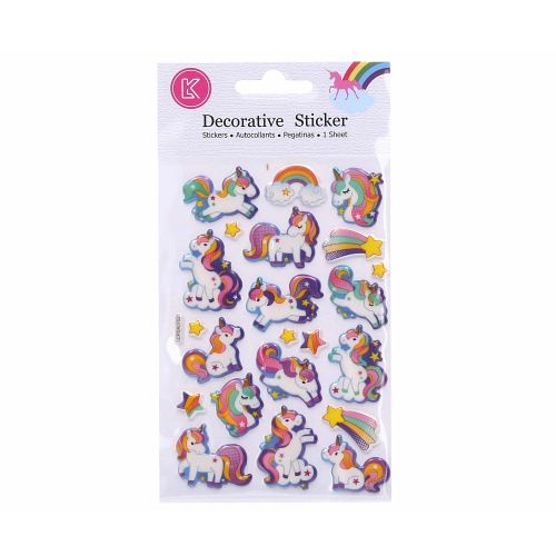 3D nálepky jednorožci + hvězdičky, duha - různé druhy a velikosti nálepek