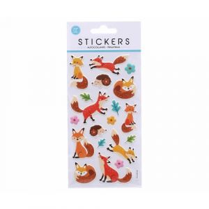 V balení najdeš barevné 3D nálepky lišek, ježků, kytiček a lístečků v různých velikostech. Lišky mají třpytivé ocásky, ježci třpytivou kytičku na bodlinách.