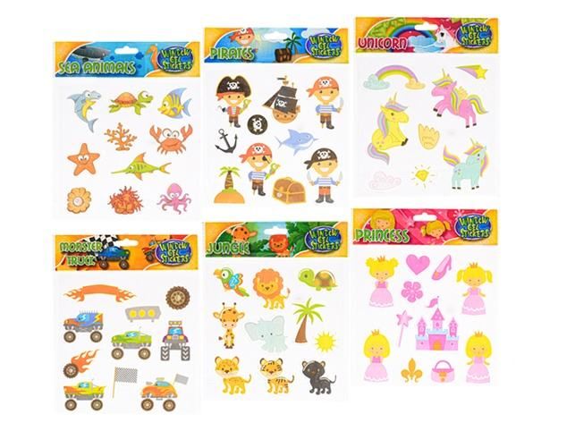 Gelové nálepky různých druhů ozdobí třeba tvůj diář, sešity, mobil či zrcadlo. Můžeš potěšit i kamarády a vyrobit jim originální přáníčko. Dostupné v 6ti druzích - džungle, piráti, jednorožec, princezna, auta, mořská zvířátka. Vhodné pro děti od 3 let.
