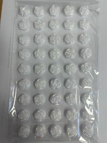 Nálepky růžičky 12 mm, 45 ks, bílé s odlesky