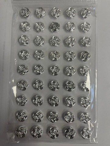 Nálepky růžičky 12 mm, 45 ks, stříbrné