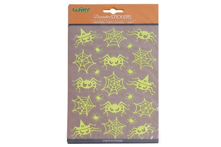 Nálepky svítící ve tmě o velikosti 25x14,4 cm Pavouci HALLOWEEN.