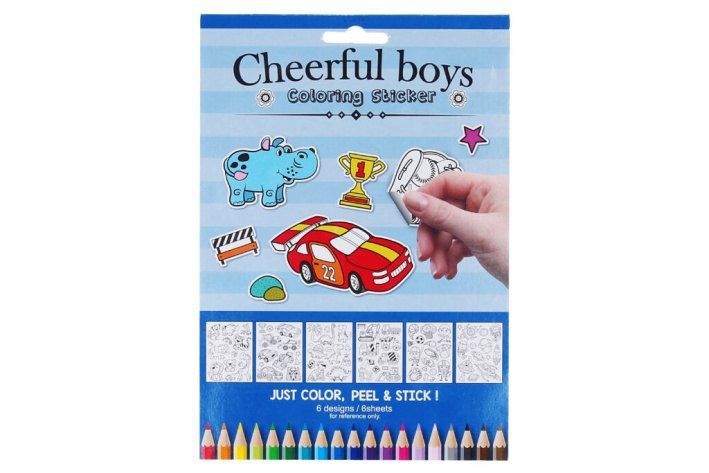 Nálepky vybarvovací pro kluky - 6 listů /009661/