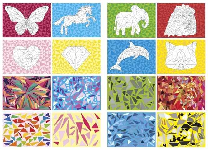 Nalepování samolepek podle čísel A4 – intarizie. Balení obsahuje 4 obrázky, 4 archy samolepek. Dva druhy.