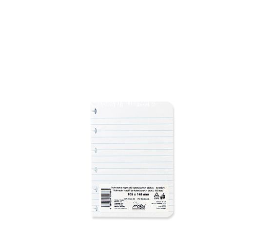 Náhradní náplň linkovaných papírů do kolečkových bloků. Formát: A6 Počet listů: 60l Rozměr: 105 x 148mm