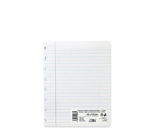 Náhradní náplň linkovaných papírů do kolečkových bloků. Počet listů: 70l Rozměr: 165 x 210mm